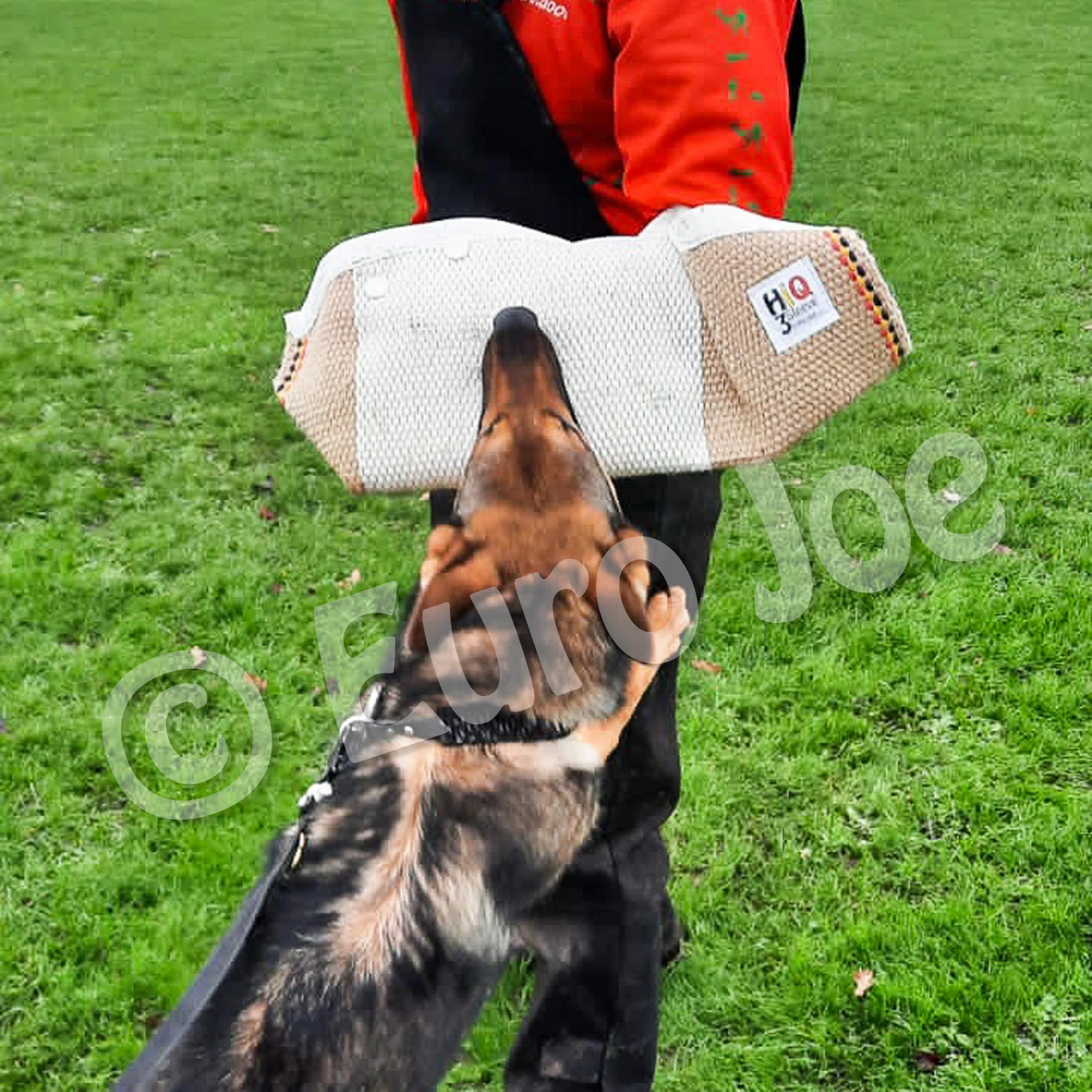 The HiQ3 sleeve is ideal for teaching young dogs a good, full bite. This sleeve has a cover that is extremely strong and handles dog bites very well. The white area makes it clear to the dog and handler where the right place is to bite.