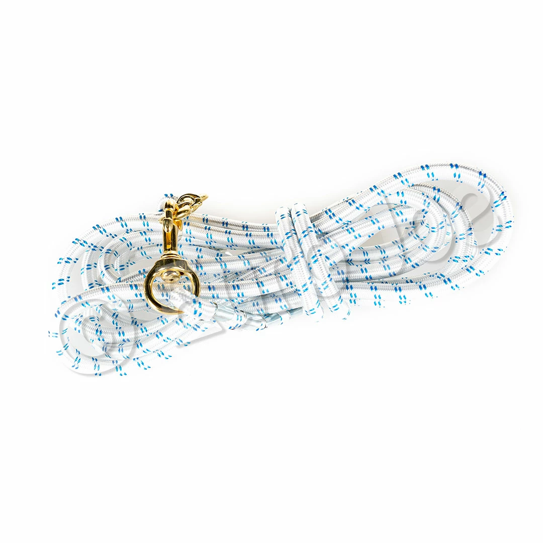 To start with this elastic line you fasten the dog for the first time so that the dog cannot reach the helper. When the dog will try to reacht the helper, he will be drawn back to its starting position. The following times, the dog will try to get as close as possible to the helper. He will have to catch up faster and will therefore make sure that he won’t be pulled back.