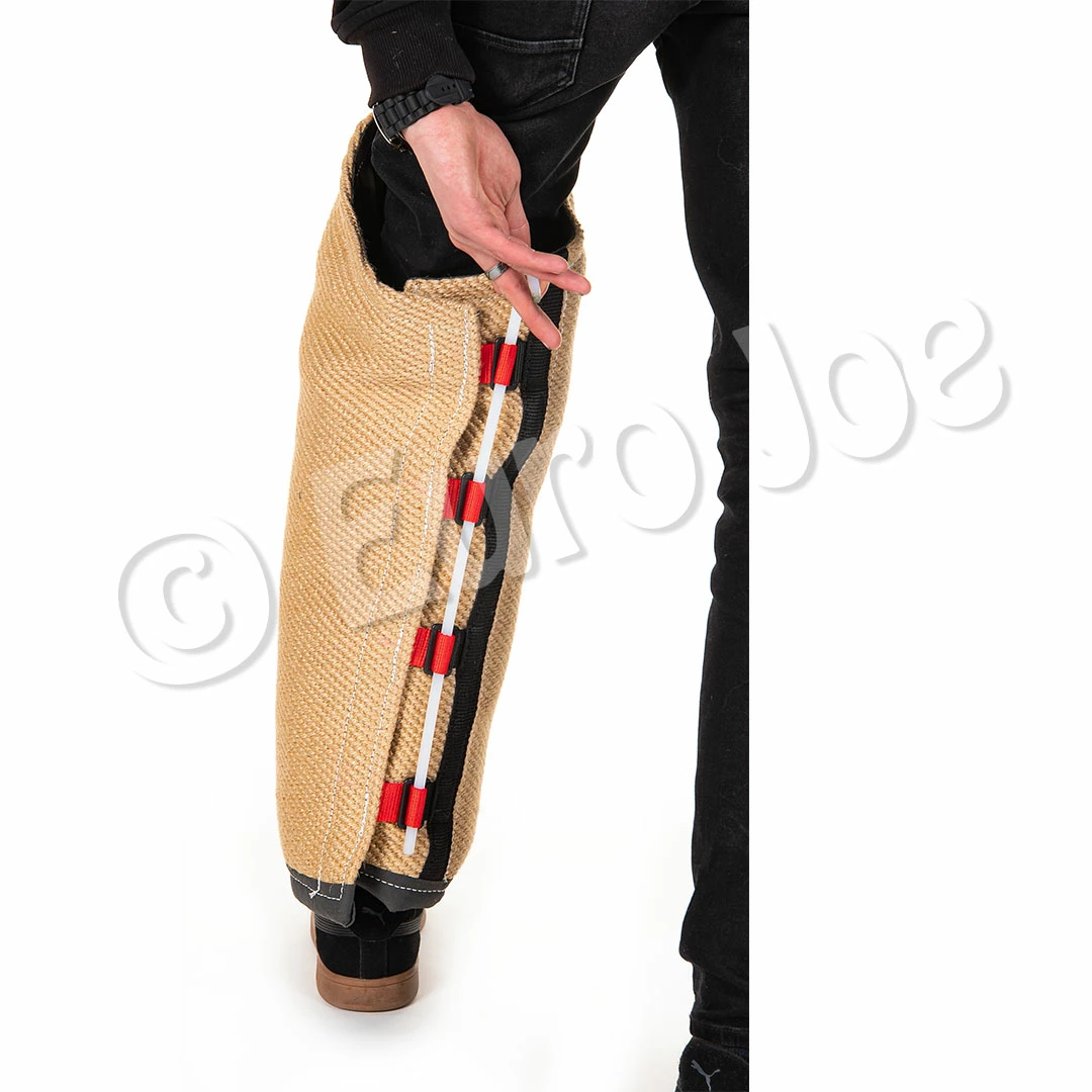 The nr. 2 legsleeve in jute is an extra light legsleeve for puppies and young dogs, already a little heavier then the nr. 1 legsleeve, but still very soft. The pup learns to open his mouth to take its “prey”, and is afterwards rewarded by the squeezing effect of the soft padding.