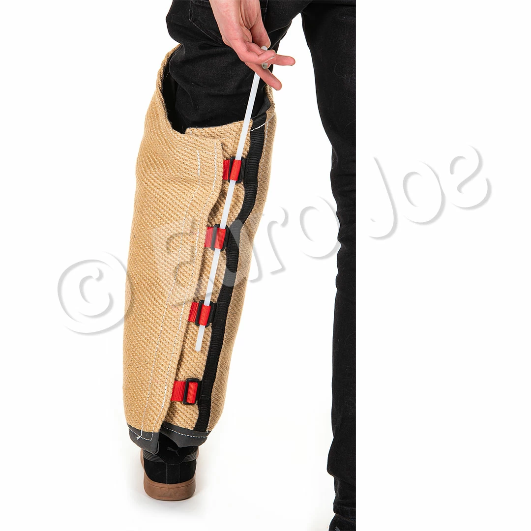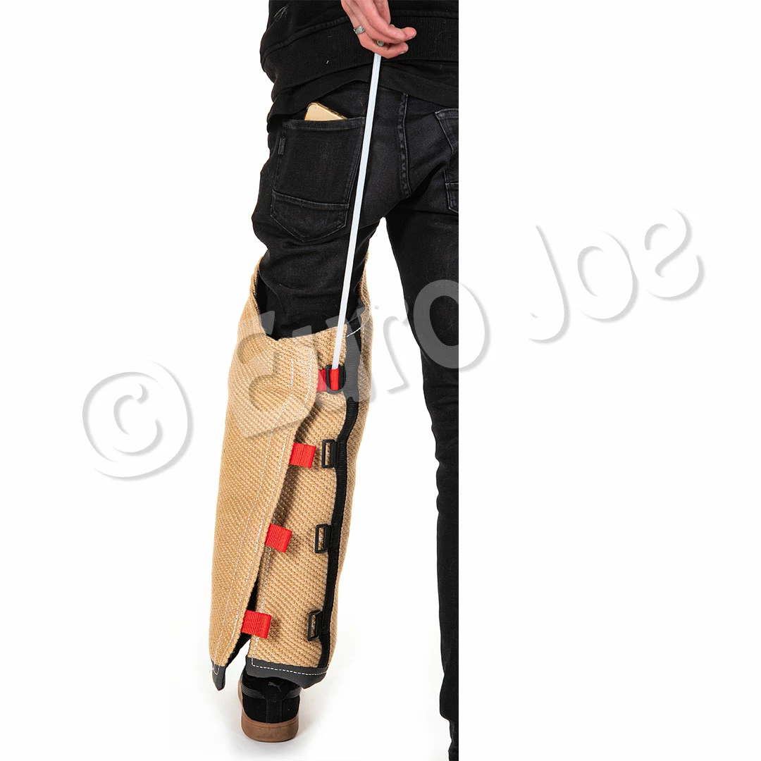 Because of the fact that the legsleeve is opened at the back by means of the leather puller, this legsleeve or ‘jambière‘ can be given to the dog as a “prey”, as a reward. This will make the dog more confident and will make him do the exercise even more and better!