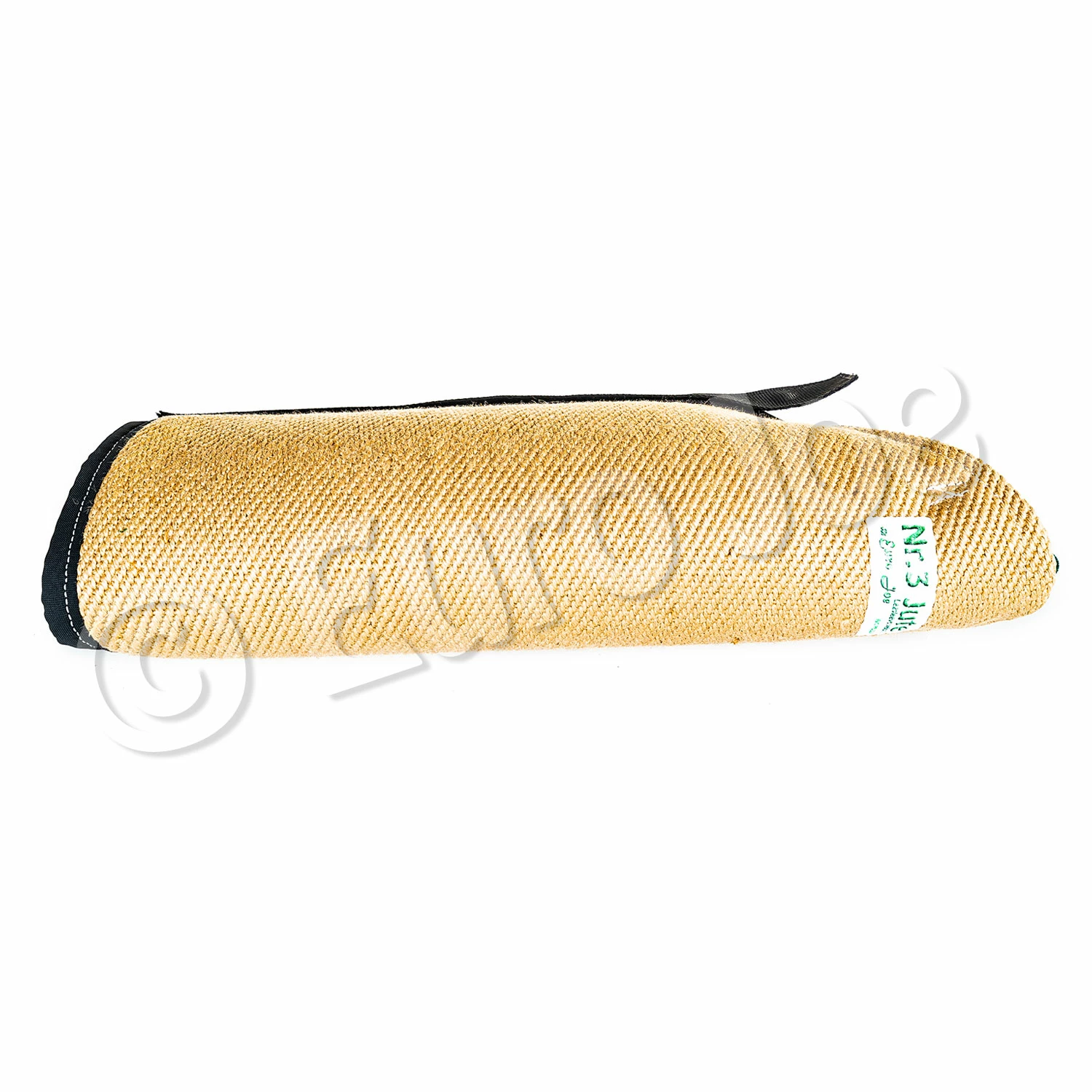 The nr. 3 legsleeve in jute is a lightweight leg sleeve suitable for puppies and young dogs, which do already know well how to bite. Because of the big volume, the pup learns to open its mouth, but once the pup is biting, he will “gain” through the high compressing effect of the soft padding and become even stronger !