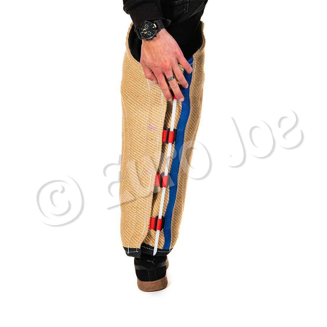 The heavy legsleeve nr. 4 in jute with pull toggle is a heavy legsleeve ideal for young and adult dogs and allows them to put a full grip. This jambière is again a little heavier, which means the dog has to do some more effort to bite. After this effort, the dog is rewarded through the underlying, compressing padding. For dogs who already know how to bite the leg.