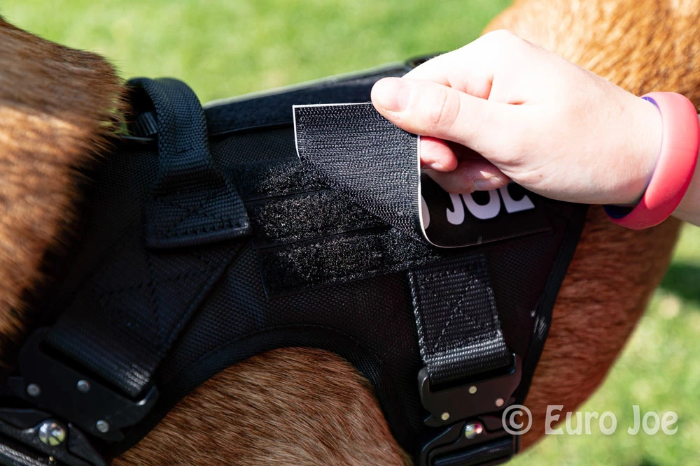 There are several strips of Velcro on the harness, which gives you the opportunity to apply various name badges.