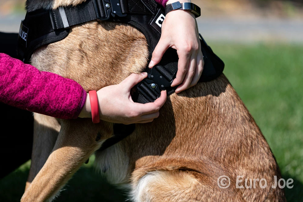This adjustable dog harness has a handle on the back, which gives you the opportunity to quickly grab the dog, or possibly give it an extra support.