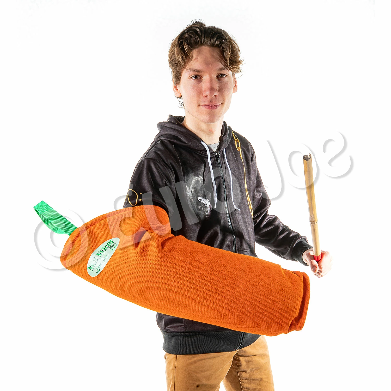 Light young dog sleeve nr. 3 is a sleeve that is suitable for your young dog. This bitesleeve is already a little harder, but still allows the young dog to “win” on this soft sleeve. The sleeve with the green strap .