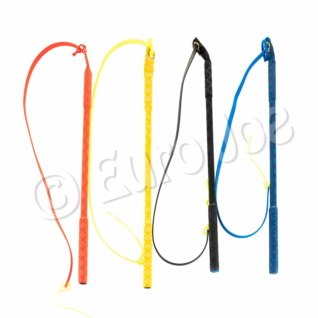 Whip for motivation in dogsports made of a strong, flexible plastic lined with a waterproof material. At the end a biothane rope with a popper. Length of the whip : 57 cm, length of the biothane rope : 55 cm.